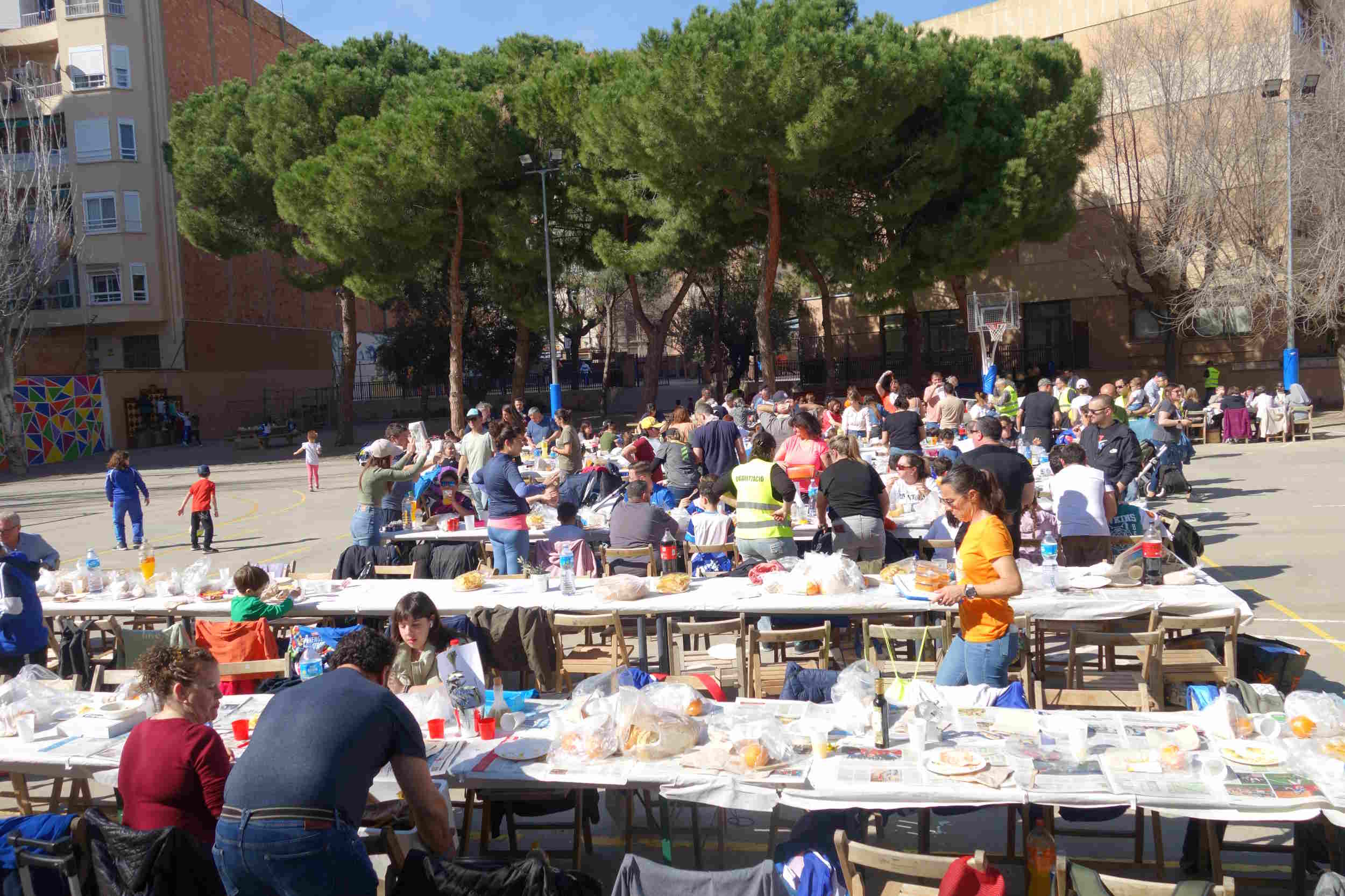 Després del Cross es va poder gaudir de la ja tradicional calçotada del Col·legi. I, els més petits van poder gaudir de la visita de l'Àliga de Reus i d'un taller de "pintacares".